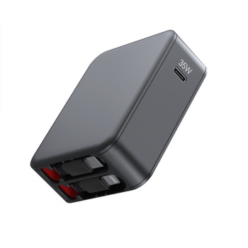 3 in 1 retrattile spina pieghevole caricabatterie a muro con doppio cavo 35W USB C adattatore di alimentazione per telefono portatile ricarica rapida