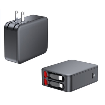 65W 4 in 1 retrattile tipo-C e cavo di illuminazione adattatore veloce per caricabatterie del telefono con uscita tipo-c e USB per la ricarica del telefono portatile