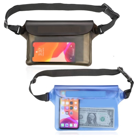 IP68タッチ可能なScree防水ポーチバッグ、調節可能なウエストストラップベルト付き防水ウエストバッグビーチ水泳用ドライバッグ